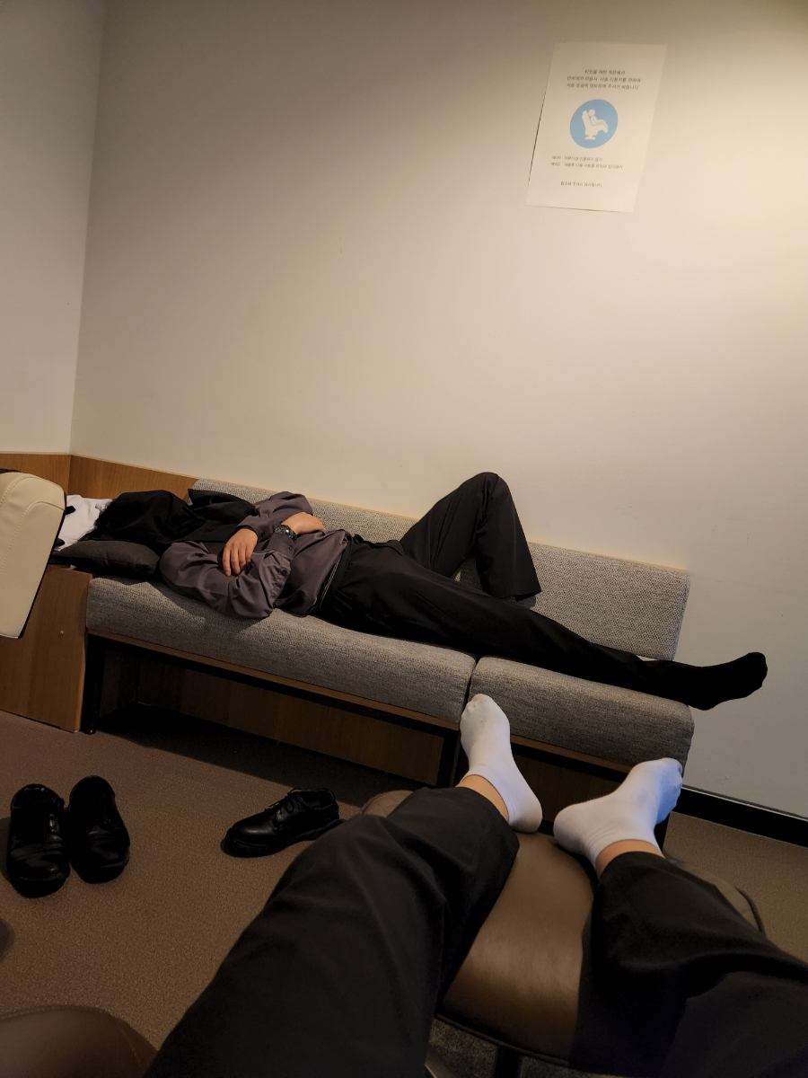 앞에 친해진 형인데 진짜 웃기셨다. 직원들 쉬는 곳에서 안마의자에 누워가지고 좀 쉬다가 식당 가서 식권 주고 밥을 먹었다.