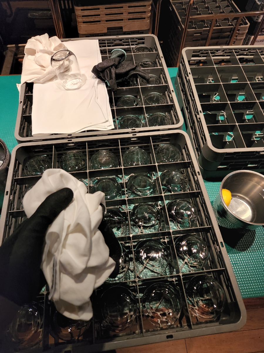 처음 들어갔을 때는 손님들이 없기 때문에 핸들링이라고 세척된 컵을 리넨으로 컵 닦기를 시키신다.